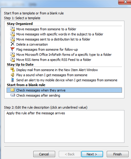 Step 6: Select Check messages when they arrive and click Next button.