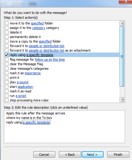 Step 8: Check reply using a specific template. And then click the label "a specific template" under "Step 2" to select template.