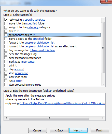Step 11: Check except if it is an Out of Office message. Click Next button.