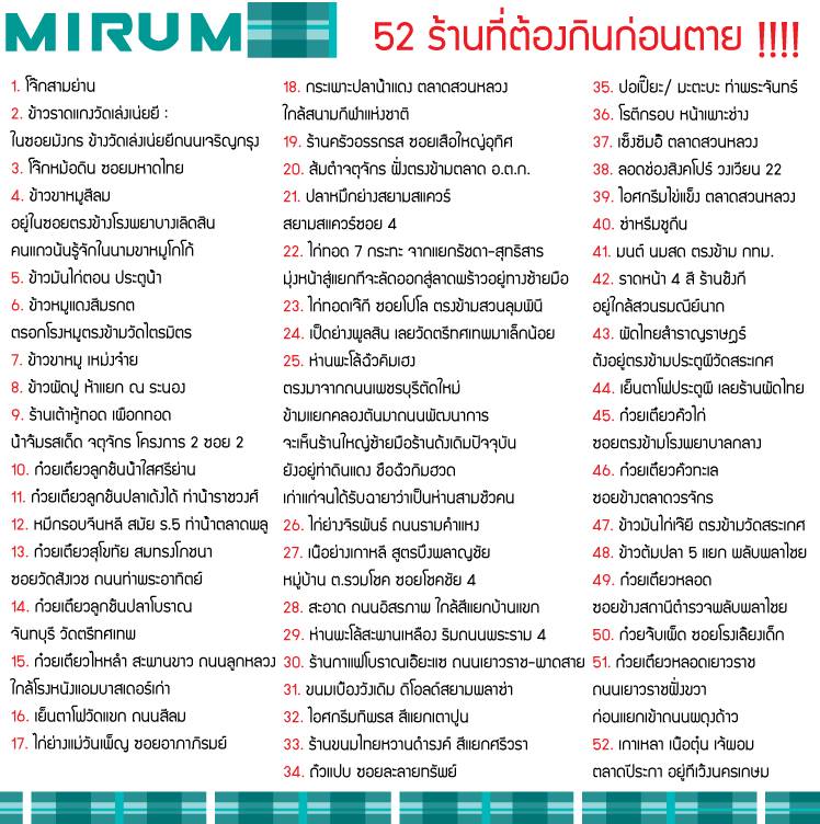 อันดับร้านที่ต้องไปกินก่อนตายค่ะ