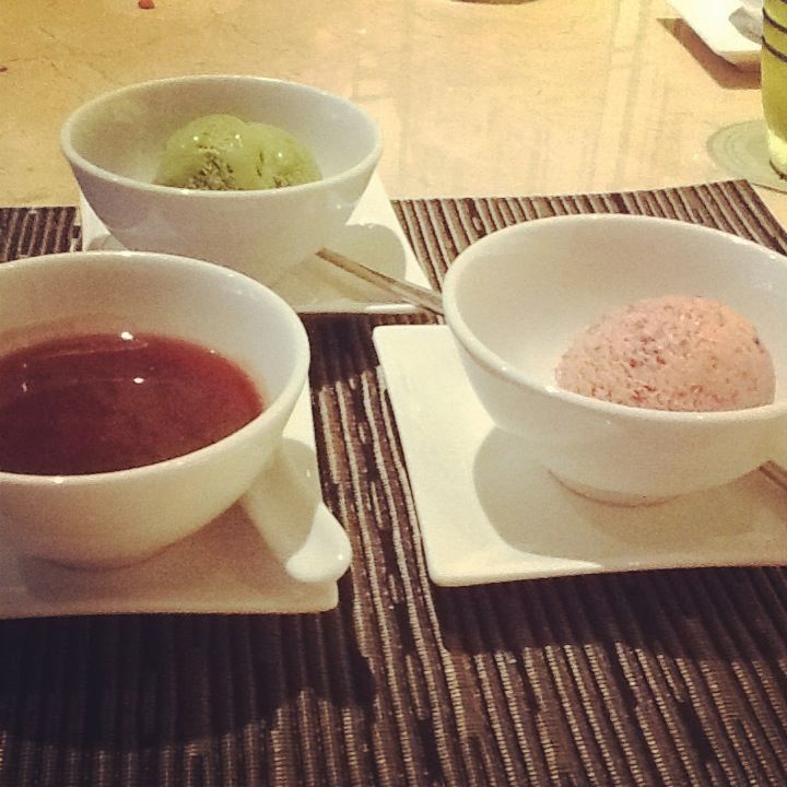 ปิดท้ายด้วยของหวาน มี 3 อย่างจัดมาทั้ง 3 อย่าง ชอบถั่วแดงค่ะอร่อยดี ไอติมชาเขียวทั่วไป