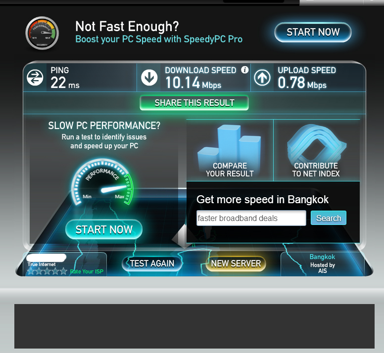 มันเป็น 10 เม็ก " ผมก็เทสตอนนั้นได้ความเร็ว 9.5 Mb อัพโหลด 314 Kbp " และก็บอกทางพนักงานไป คิดว่าเรื่องน่าจะจบ