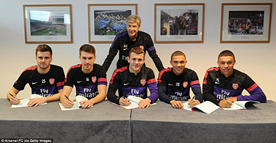 เมื่อเดือนธันวาคมปี 2012 อาร์เซนอล ต่อสัญญานักเตะชาวบริติชหรือสหราชอาณาจักร พร้อมกันทีเดียวถึง 5 คน