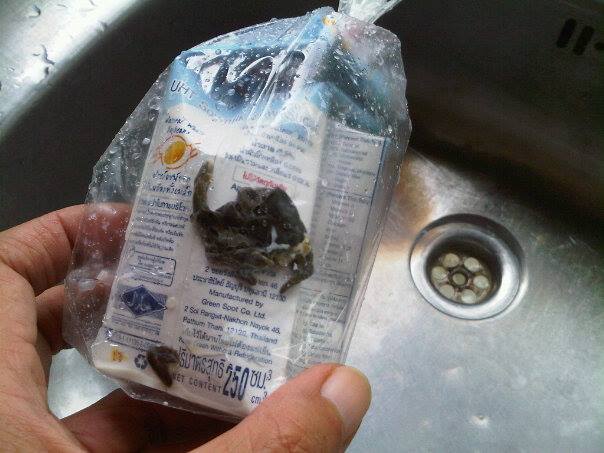 แต่ดูที่กล่องก็ไม่ได้หมดอายุ แต่มีรสชาติเหนียวๆแปลกๆ เลยเอะใจแกะกล่องดูค่ะ พบว่าข้างในมีสิ่งแปลกปลอม