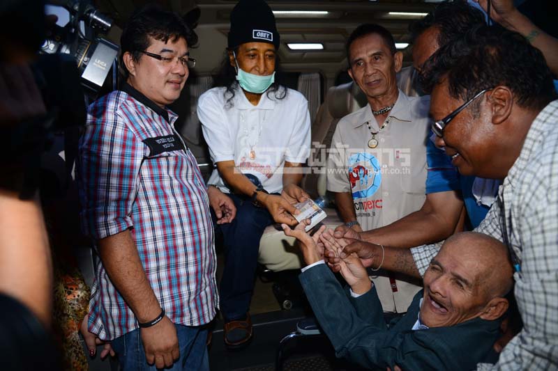 ที่เขาเรียกว่าขอทาน ซึ่งชีวิตตกอับ ลำบาก ยากเข็ญ มาค่อนชีวิตเหมือนๆ กัน นั่งรถเข็นมามอบเงินแสน (ที่เขาทำบุญผ่าน