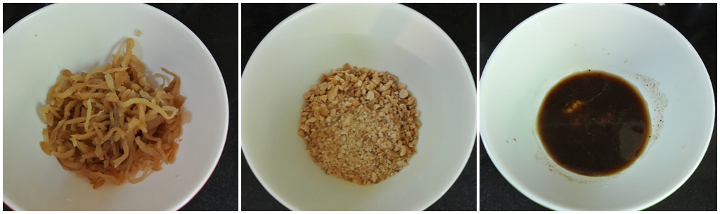 ไชโป้ว ถั่วลิสงป่น ซอสผัดไทย (น้ำมะขามเปียกใส่น้ำตาลปี๊บ ปรุงให้มีรสเปรี้ยวอมหวาน)