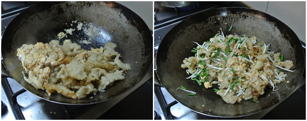 ผัดให้ไข่สุก เติมซอสผัดไทย ซีอิ้วขาว
