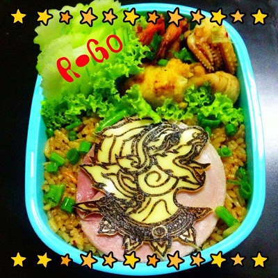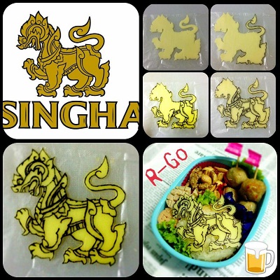 กล่องนี้กล่องแรกที่ทำด้วยชีสกับการใช้สีผสมอาหารสีดำกับไม้จิ้มฟันวาดเส้นเป็นตัวสิงห์ครับ