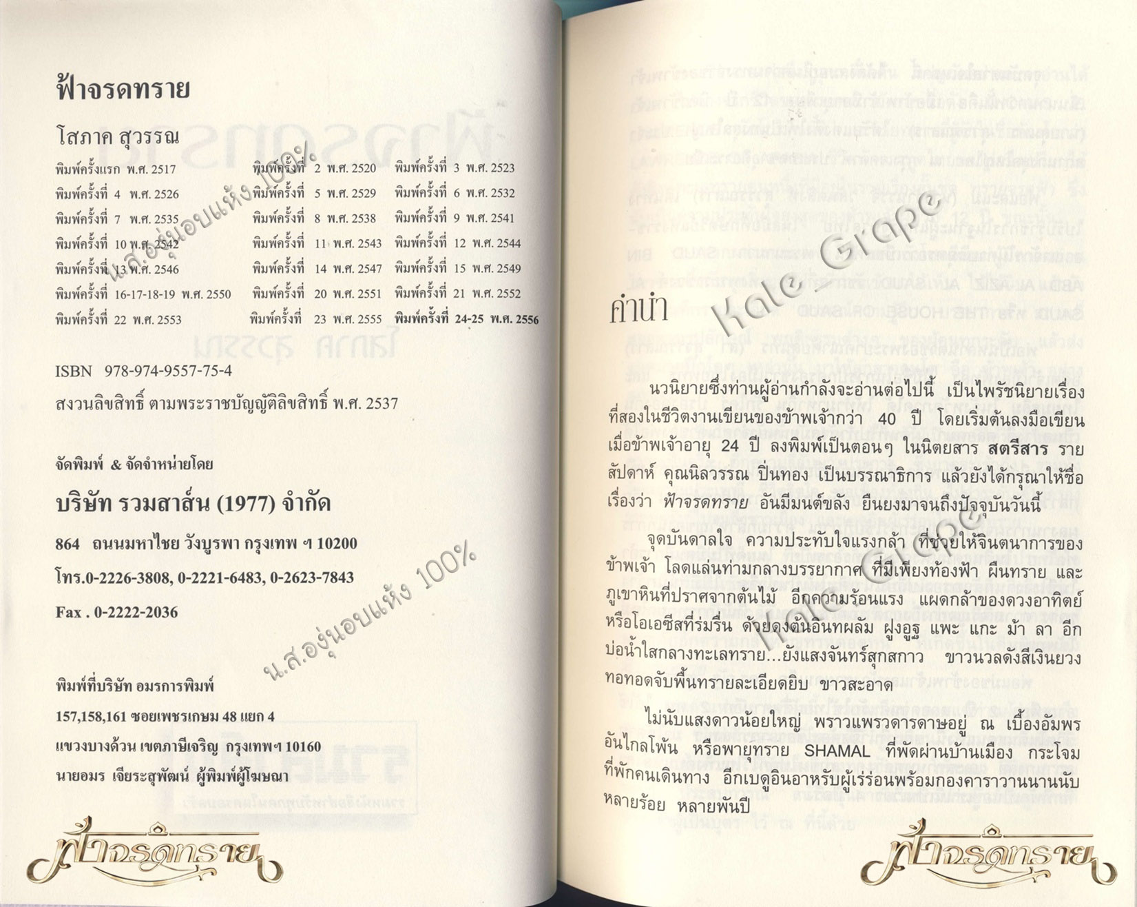 มาอ่านคำนำในหนังสือนวนิยาย ฟ้าจรดทราย ของโสภาค สุวรรณ เนื่องในโอกาสตีพิมพ์ซ้ำ ปี พ.ศ. 2555 คาดว่าน่าจะเป็นการพิมพ์ครั้งที่ 23 ค่ะ