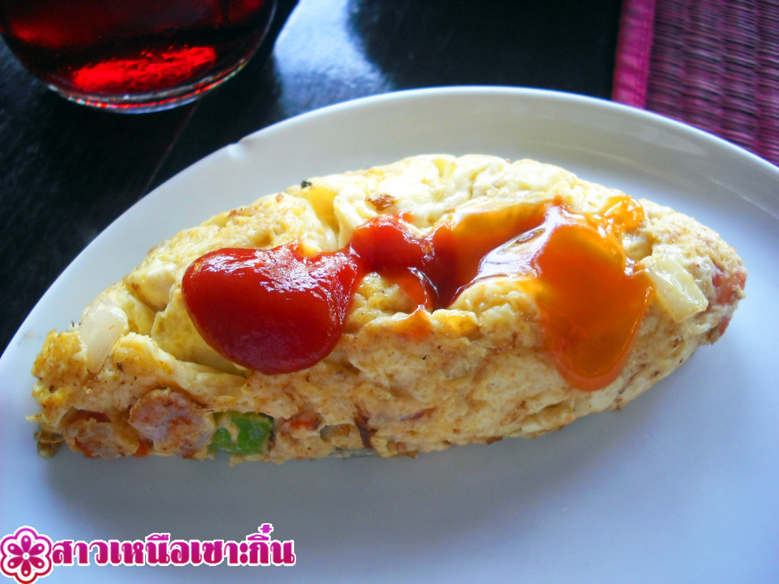 แต่อิฉันยังไม่ทันจะได้เข้าไปในส่วนบุพเพ่ต์ ดันพุ่งมาสนใจกับมุมด้านขวาของทางเข้า มีฝรั่งกำลังรอให้พนักงานที่กำลังทำไข่กวนให้อยู่...เห็นเมนูไข่แล้วสาวเหนือฟินมากค่ะ(ชอบกินไข่เป็นอาหารหลัก แม้แต่แกงเผ็ดก็ต้องมีไข่กินเป็นกับแกล้ม) รีบจ่อรอคิวเอาเลย เดี๋ยวคิวยาว...ก็บอกพนักงานไปค่ะว่าจะเอาไข่ยัดไส้อะไรบ้างตามถาดวัตถุดิบที่พนักงานเตรียมไว้ แต่อิฉันบอกเอาหมด! จัดเต็มให้พี่เลยน้อง!