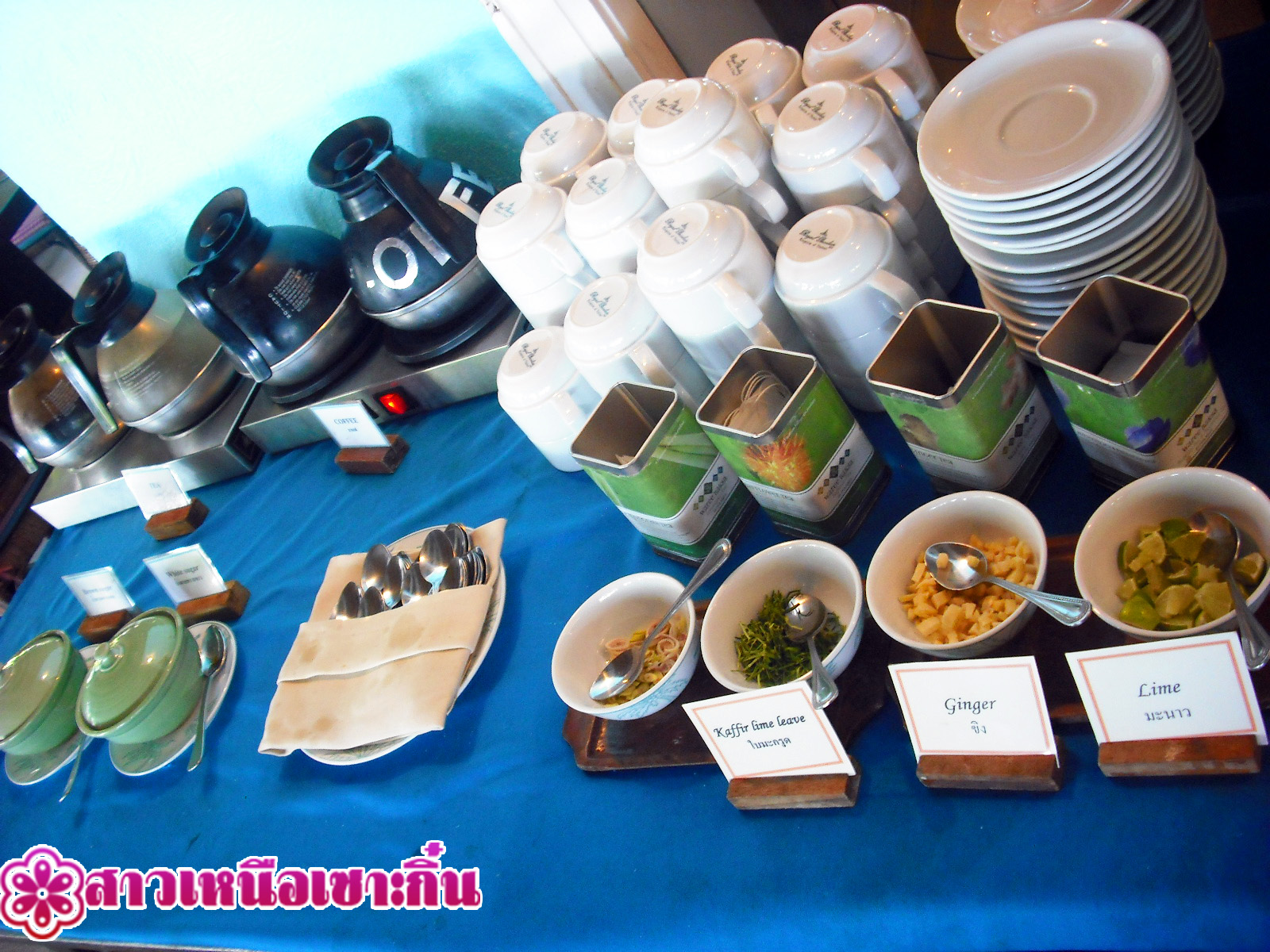 ก่อนที่จะเข้าไปรับประทานอาหาร ก็ต้องมีการเช็คอินกันก่อนค่ะ ทางพนักงานจะดูหมายเลขเลขจากกุญแจที่เราถืออยู่ (ยังไงออกมาจากห้องก็ต้องล็อกห้องอยู่ดี) ในเอกสารจะมีหมายเลขห้องกับชื่อเราไว้ เมื่อเจ้าหน้าที่เห็นหมายเลขห้องเราแล้ว ก็จะขีดฆ่าชื่อเรา แล้วก็เชิญเราเข้าไปรับประทานอาหารได้ตามอัธยาศัยค่ะ (ค่าอาหารเช้าตกราวคนละ 95 บาท(2 คน=190 บาท) รวมไปในราคาที่พัก (1,800 บาท) แต่ถ้าเราไม่ทานข้าวเช้าของโรงแรม ก็ระบุไม่เอาอาหารเช้าก็ได้ค่ะ ค่าที่พักจะลดลงเหลือ 1,610 บาท...แต่อิฉันอยากรีวิวอาหารเช้าของโรงแรมให้เพื่อนๆได้เห็นว่าเป็นยังไง ดีไม่ดีมาพักอีกรอบจะได้ตัดสินใจถูก อีกอย่างคือ ยังไม่แน่ใจด้วยว่ามาหน้าโลว์ พวกร้านอาหารเช้าส่วนใหญ่ไปเปิดกันตอน 9 โมงเช้า หิวท้องกิ่วพอดี เลยเอาราคารวมอาหารเช้าด้วยล่ะกันค่ะ)