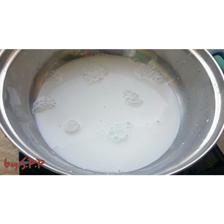ทำการตั้งกระทิ เพื่อเคี่ยวให้แตกมัน ผมใช้กระทิสำเร็จรูป อร่อยดี เพราะสะดวก (ขี้เกียจคั้นมือ)