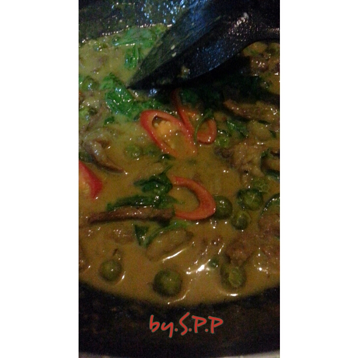 วันนี้ผม ผัดพริกแกงกับเนย ได้ความหอมไปอีกแบบ เมื่อพริกแกงสุก ค่อย ๆ เติมกระทิและผัดไปเรื่อย ๆ