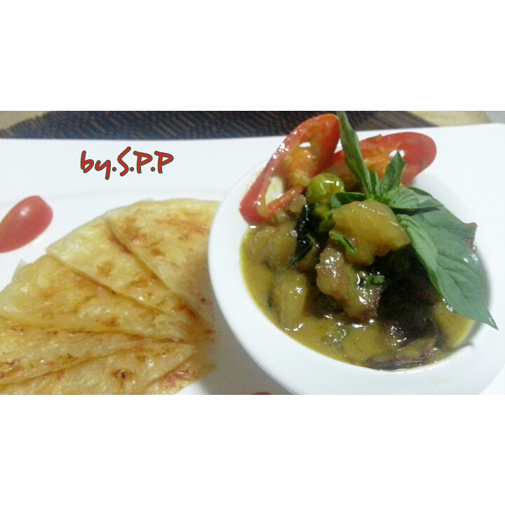 มาทำกับข้าวทานกันเถอะ # Step by Step : โรตี แกงเขียวหวานเนื้อ กับ มะเขือม่วงอบชีส