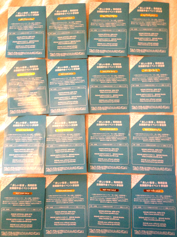 สุดท้ายใช้ตั๋วหมด 14 แถวเลย เหลืออีกสองไป เลยไปหา นันนัน อีกรอบ และบอกว่า ผมเป็นคนไทยนะ แล้วคนไทยที่สนับสนุนนันนันก็มี (แต่อาจจะไม่ถึง 10 คน 555) เธอบอกว่าภาษาญี่ปุ่นเก่งมาก ไม่บอกไม่รู้เลย (ความจริงกาก > <) จากนั้น ซึจัง ก็ยังสนใจหูฟังผมเหมือนเดิมแล้วถามว่ากำลังฟังอะไรอยู่ เลยตอบไปว่า แน่นอน SKE สิ (จริงๆ Bump of Chicken ครับ ขอโทษนะครับ ซึจัง!!!)