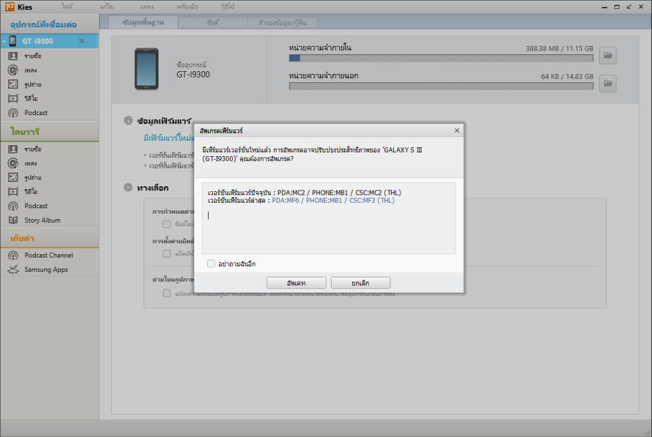 อัพเฟริมแวร์S3 ผ่านมือถือแล้วไม่มีให้อัพเดต แต่ลงSamsung Kies มีตัวอัพเดต แต่อัพเดตไม่ได้ ต้องแก้ไขอย่างไรคับ
