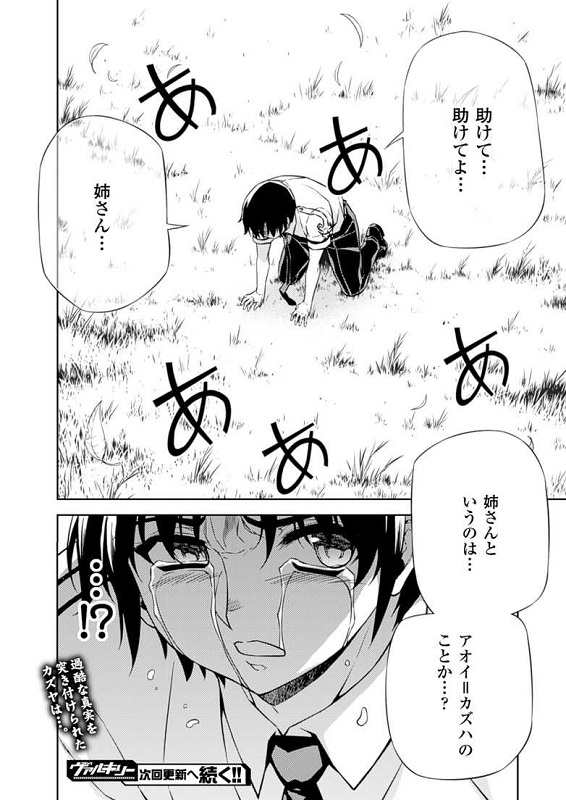 ตอนนั้นเองก็มีเสียงหนึ่งดังมาจากด้านหน้าของคาซึยะถามว่า "ที่เรียกหาพี่นั่นหมายถึงอาโออิ คาซึฮะงั้นรึ...?"
