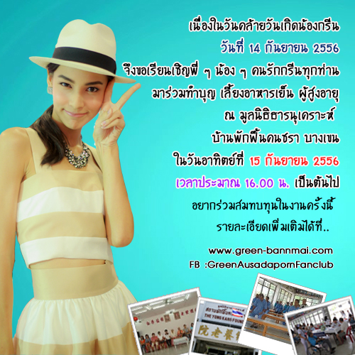 Fanpage กรีน (จัดทำโดยแฟนคลับค่ะ)>> http://fb.me/GreenAusadapornFanclub
