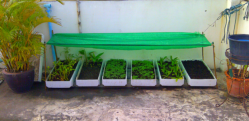 มาลงตัวที่ปลูกผักครับ ปลูกบนระเบียงดานฟ้าหอพัก