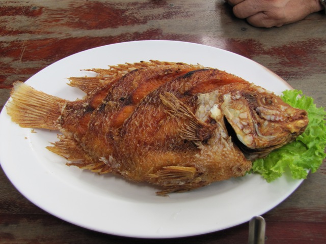 - มาดูอาหารที่สั่งในวันนี้เลยนะครับ ปลาทับทิมทอดราดพริก (แต่ขอแยกน้ำราดเพราะว่าให้ลูกสาวทานด้วยครับ) ตัวใหญ่มาก ทอดร้อนๆ ตอนแรกน้องไม่เอาน้ำราดมาให้ เกิดจากความผิดพลาดในการจดออเดอร์ แต่ก็แก้ไขได้อย่างรวดเร็วครับ (ฮาตรงที่น้องอีกคนบอกว่าใครจดออเดอร์ พอบอกไปน้องเขาบอกว่า “อีกแล้วเหรอ” แล้วก็บ่น บลาๆๆๆๆๆ ตลกดีครับ แต่ไม่ได้โทษน้องเขานะครับ คนเราผิดกันได้และแก้ไขได้ดีเลยเจ๊ากันไป)