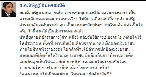คงไม่ได้มีแค่นี้หรอก เดี๋ยวก็จะมีม็อบต่างๆ เพิ่มมาอีก อาจะเป็นข้าวโพด มัน อ้อย ถ้านายกยังเดินสาย on tour อยู่แบบนี้โดยไม่จริงใจกับบ้านเมือง