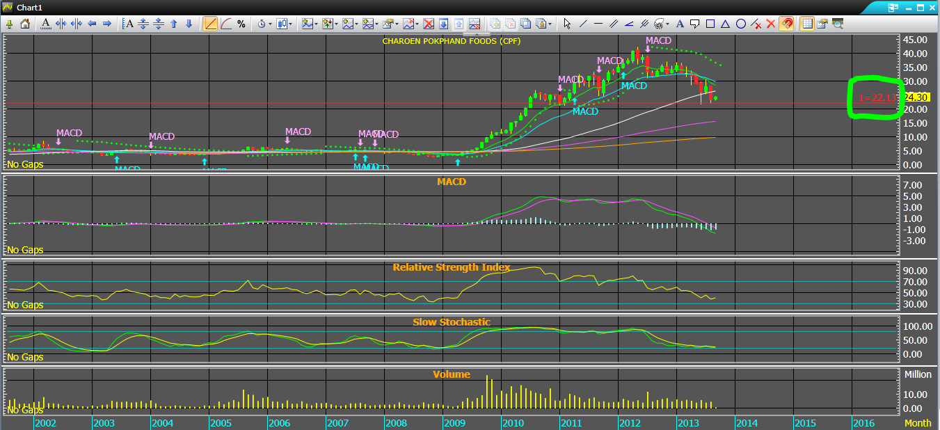 แนวรับแข็งแกร่งในรอบ 5 ปี คือแนวรับที่ราคา 21.10 บาท ซึ่งตอนนี้มันมาทดสอบแล้ว !! ดังนั้น จะหลุดหรือไม่นั้นคงต้องตามชมกันต่อไปอีกถึงวันพุธหน้า ว่าจะปิดที่ราคาเท่