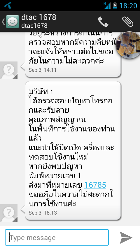 หมายเลข 083-116-3384 เคยติดต่อไป 1678 เรื่องสัญญานมี 1 ขีดมั่ง 0 ขีดมั่ง ไม่มีสัญญานเลยก็มี แต่ตอนนี้เปลี่ยนเบอร์แล้วครับ ไปใช้เบอร์เก่า คือ 085-059-5168 ผมคุยกับพี่ชาย จน พี่ ชายบอก ย้ายที่อยู่เถอะ ผ