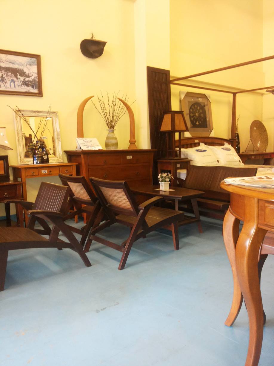 เพราะภายในร้านเค้าขายพวกเครื่องเรือนไม้ตกแต่งบ้าน แล้วเจ้าของใช้บริเวณหน้าร้านขายของ
