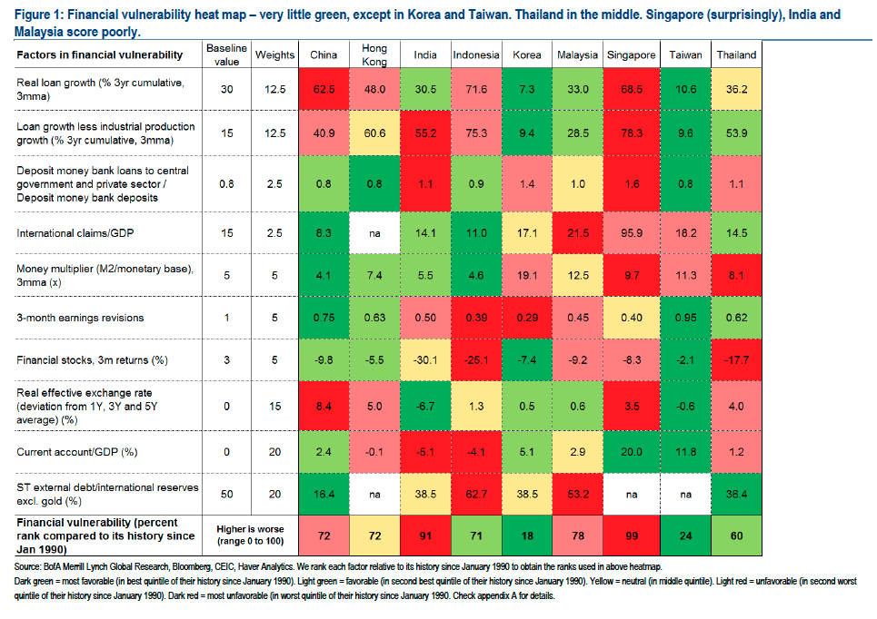 แผนผังความเสี่ยงทางการเงินในเอเชียเทียบกับสมัยก่อนต้มยำกุ้ง