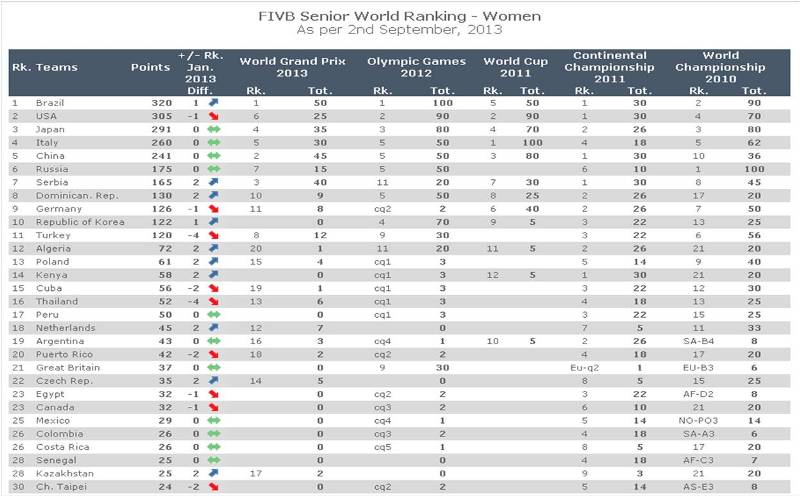 วิธีการจับสลากของ FIVB ในชิงแชมป์โลก 2014 ยึดตามอันดับโลกเป็นหลักโดยวิธีการคือเอาเจ้าภาพ และ อีก 11 ทีมชาติที่อันดับโลกดีที่สุดมาจัดกลุ่มแบบสลับฟันปลา ถ้ายึดตามอันดับโลก ณ ปัจจุบัน และการคาดการณ์ทีมที