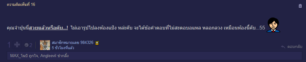 ไม่สวย แต่เรื่องตีฝีปากกับผู้ชายใจตุ๊ด ดิฉันไม่มีถอยค่ะ (ถ้ามีเวลา) อย่าท้าตบก็แล้วกัน ดิฉันไม่ชอบพวกเถื่อย ถ่อย ใช้กำลัง
