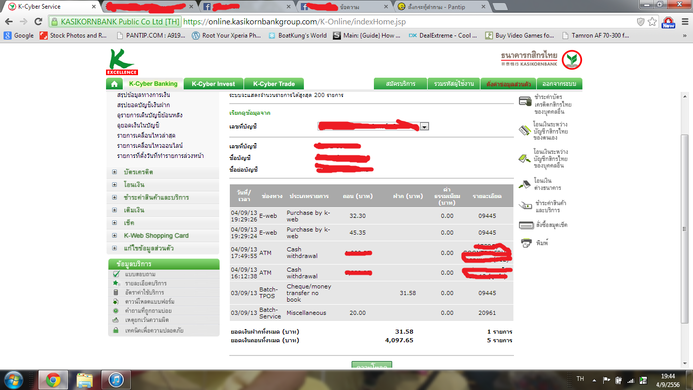 - วันที่และจำนวนเงินที่โดนตัด