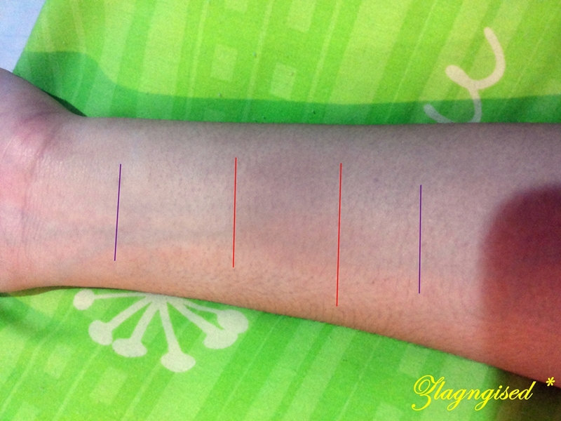 ขีดแดงเป็นขีดที่ทานะคะ ไม่รู้ว่าเห็นชัดรึเปล่า ส่วนสีม่วงคือไม่ได้ทาค่ะ "