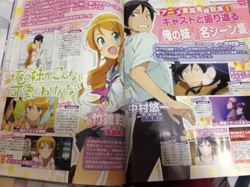 ปิดฉากทั้งฉบับอนิเมะและนิยายกันไปเรียบร้อย กับซีรี่ย์น้องสาวไม่น่ารัก Ore no Imouto ga Konna ni Kawaii Wake ga Nai ที่มีตอนจบให้แฟนๆ ได้สมหวังกันหลายคน แต่ก็มีแฟนๆ อีกหลายคนที่ได้แต่จ๋อย เพราะสาวที่อวยเป็นได้แค่นางรอง (หนึ่งในสาวที่คนเขียนอวยก็เป็นเช่นนั้น ฮือ…) อันนี้ก็มาดูกันดีกว่า จากนิตยสารฉบับหนึ่งที่ได้มีการถามสองนักพากย์ของเรื่องคือ Nakamura Yuichi ผู้ให้เสียง Kyosuke และ Taketatsu Ayana ผู้พากย์เสียง Kirino ถึงฉากประทับใจ 3 อันดับที่พวกเขาชื่นชอบจากอนิเมะทั้ง 2 ซีซั่น และฉากประทับใจที่ถูกเลือกขึ้นมาก็คือ…