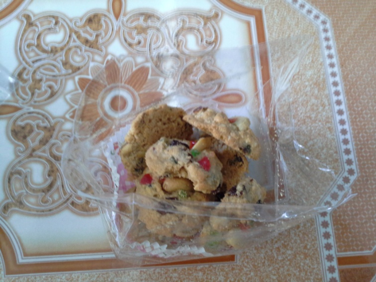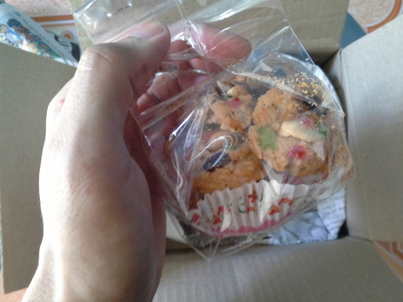 หลังจากที่เมื่อวานนั่งอิจฉาที่คนอื่นได้คุกกี้ไปนั่งกินน๊อบแนบ แม่เพิ่งมาบอกตอนสองทุ่มว่ามีพัสดุมาจากแม่นาค พระโขนง รีบแกะกล่องอย่างรวดเร็ว ก็เจอห่อคุกกี้นอนแอ้งแม้งอยู่ในกล่อง ว้าวววว ว ไม่ได