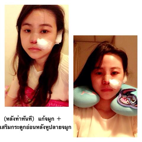 หลังจากนั้นเราเลยตัดสินใจแก้จมูกใหม่ เปนรอบที่สองค่ะ แต่ก็ไม่พอใจ เพราะปลายสั้น กุด เราจึงอยู่กับจมูกที่สองนี้ เเค่ 1 ปี และตัดสินใจทำจมูกใหม่ + ตัดปีกจมูก ครั้งล่าสุดครั้งนี้เมื่อเดือนมิถุนายน ที่ผ่านมาค่ะ โดยครั้งนี้เป็นการเสริมจมูกและต่อปลายจมูกด้วยกระดูกอ่อนหลังใบหูค่ะ มาดูรูปประกอบ กันค่ะ