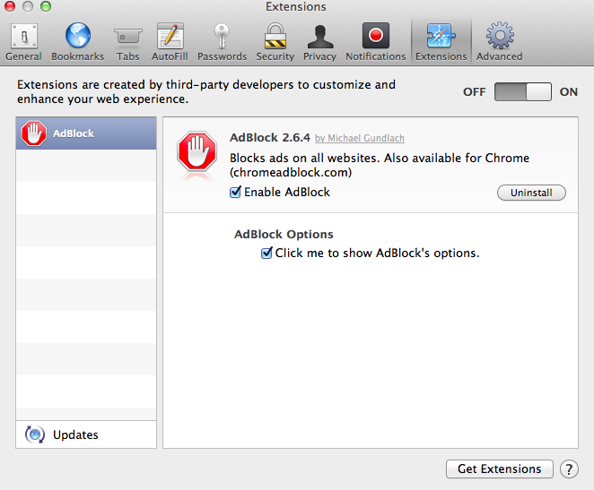 4. make sure you have AdBlock 2.6.0 if you dont find it, click on the get Extension มุมล่างขวาค่ะ