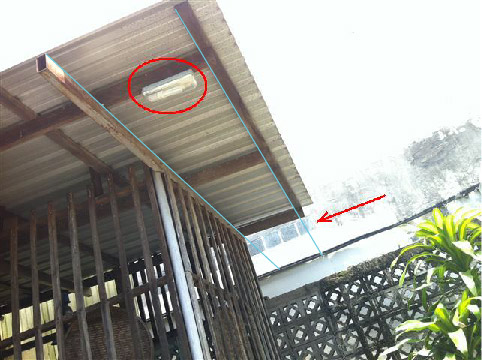 หลอดไฟที่วงสีแดงไว้ กับ บล็อกแก้วที่ลูกศรชี้ อันไหนอยู่สูงกว่ากัน ?