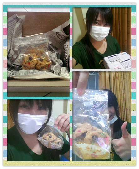 รีบแกะกล่องอย่างรวดเร็ว ก็เจอห่อคุกกี้นอนแอ้งแม้งอยู่ในกล่อง
