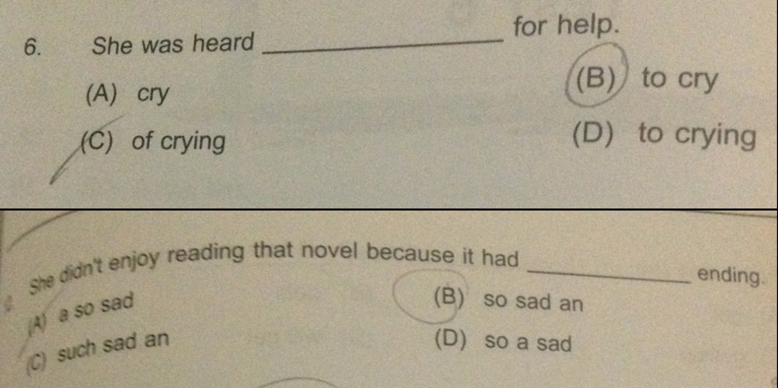 ข้อแรกนี่ผมงงๆ เลือก of crying ไปเพราะเคยได้ยิน heard of