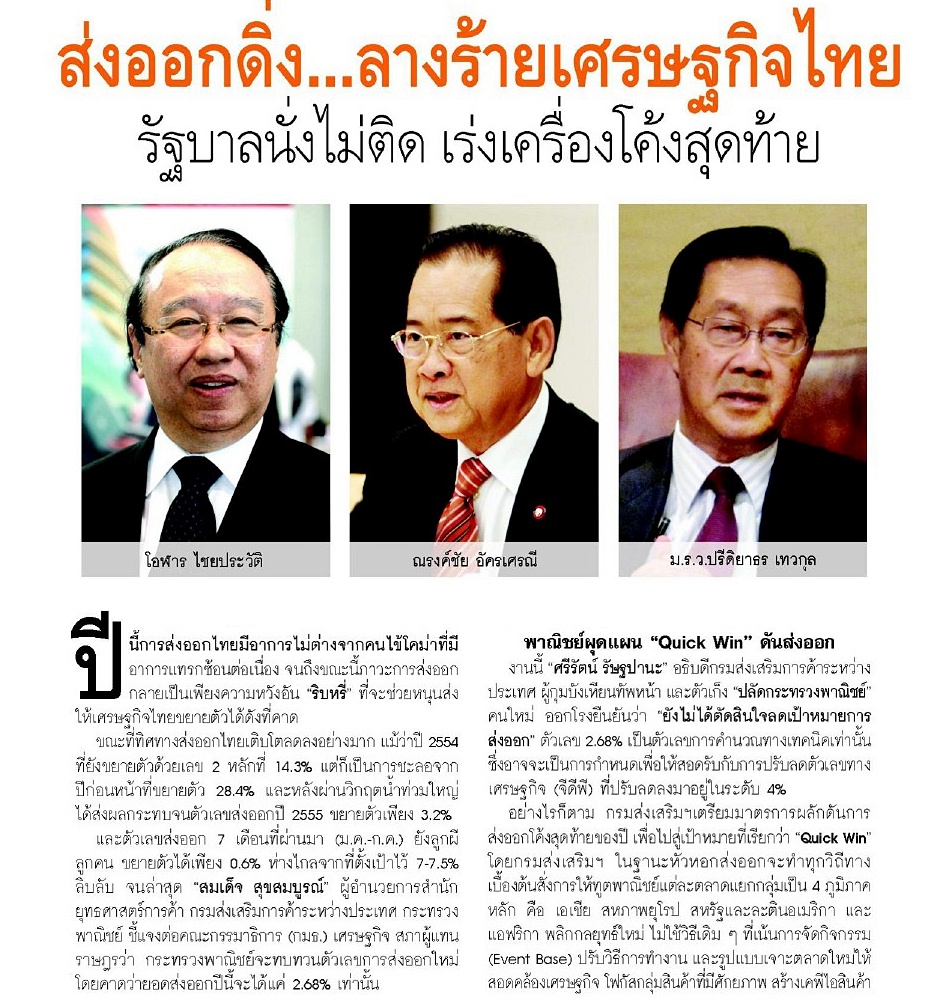 ส่งออกดิ่ง...ลางร้ายเศรษฐกิจไทยรัฐบาลนั่งไม่ติด เร่งเครื่องโค้งสุดท้าย