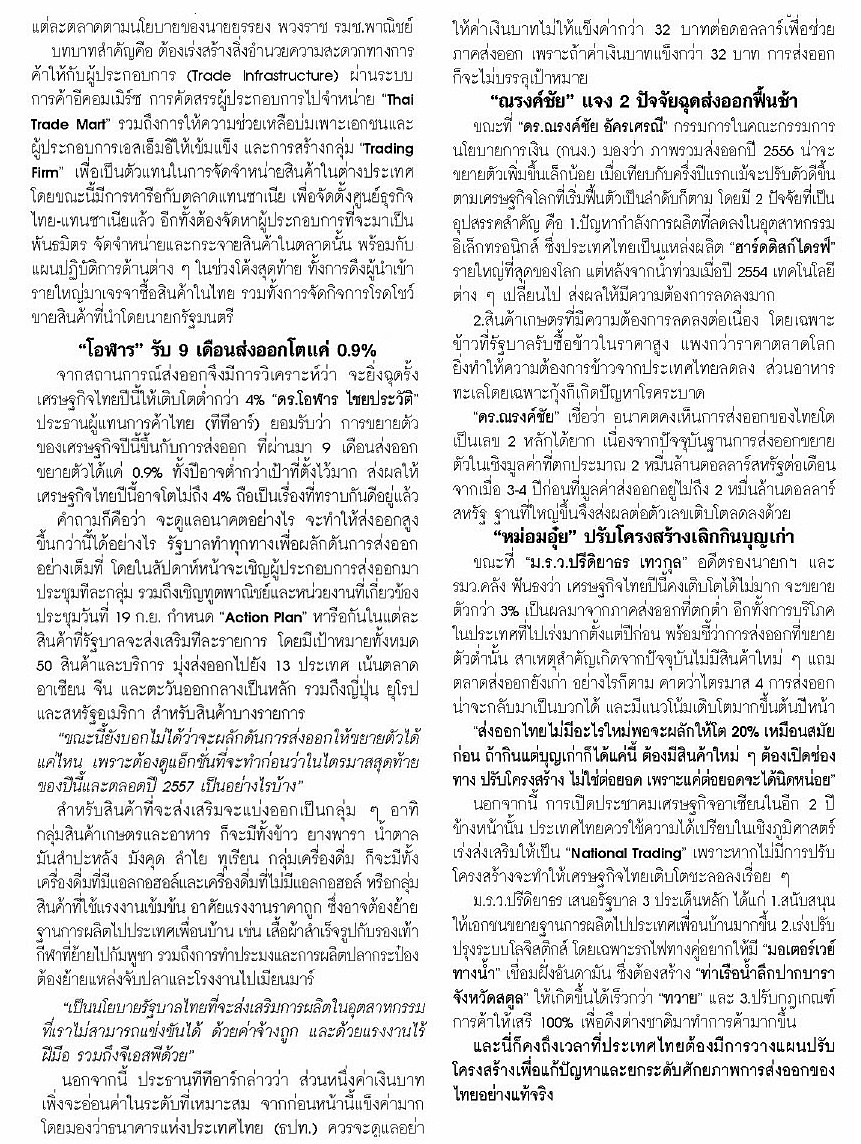 ชำแหละ 2 ปี นโยบาย ศก.ยิ่งลักษณ์ อนาคตประเทศไทย ความฝัน หรือ ความจริง ? ประชาชาติธุรกิจ ฉบับวันที่ 14 ตุลาคม พ.ศ. 2556
