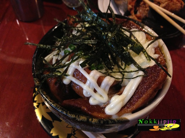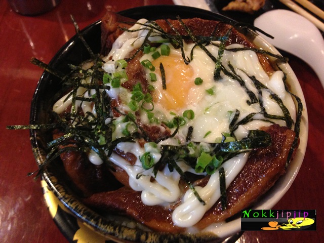 เค้าใส่มายองเนส ไข่ลวก โรยสาหร่าย จะมีน้ำซุปหมูตุ๋นราดมาด้วย โอยยน้ำลายไหล