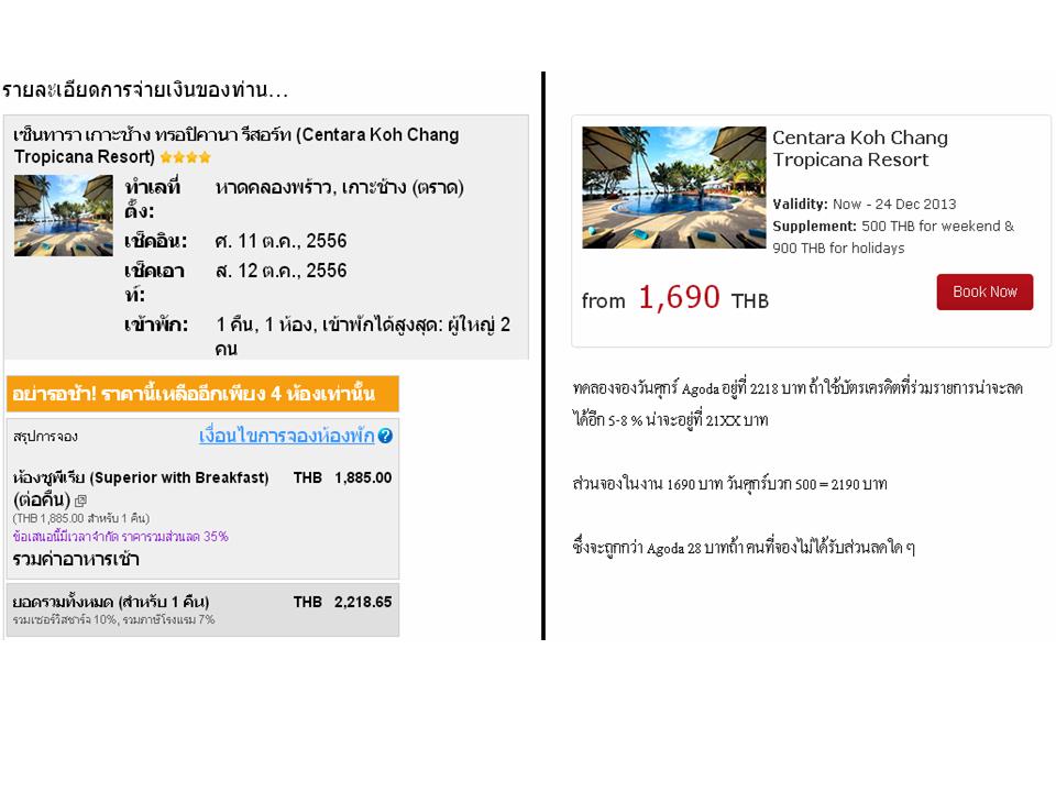 เซ็นทาราเกาะช้าง วันธรรมดา 1690 ศุกร์เสาร์ 2190 ถ้าพ้น 31 ตุลาโดดไป 3380 บาท