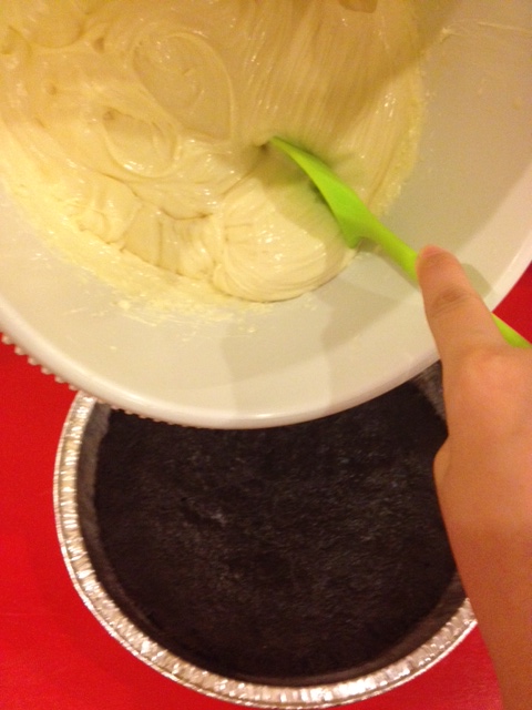 ตีครีมชืส ผสมนมข้นหวาน และบีบมะนาว ชิมให้รสเปรี้ยวหน่อย พอผสมกับครัสโอริโอ ก็อร่อยพอดี