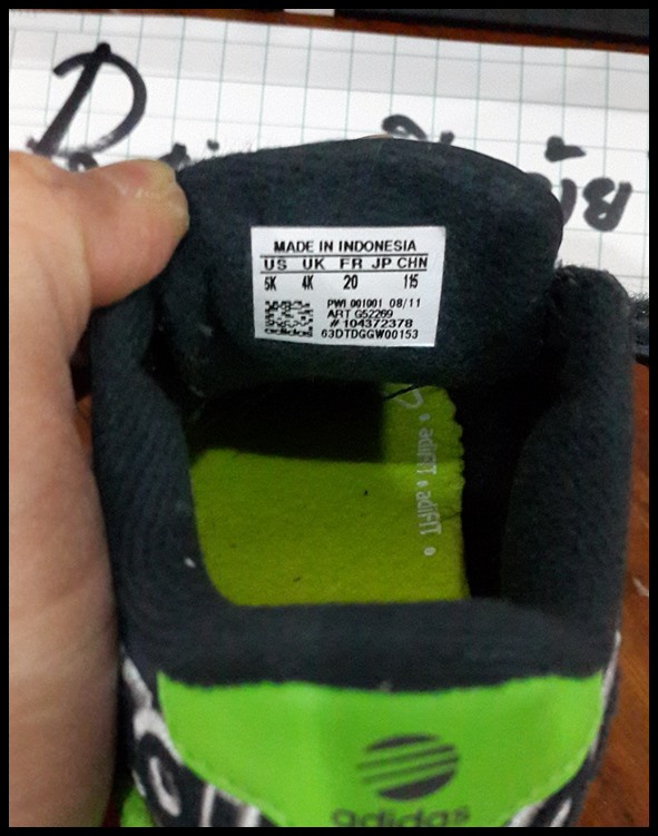 2. รองเท้า Adidas เขียว-ดำ ของแท้จาก Shop ที่อังกฤษค่า หิ้วมา ใส่ครั้งเดียว แล้วก็เก็บ Sz: 13 cm. ( ไม่เหมาะกับน้องที่เท้าอูม )