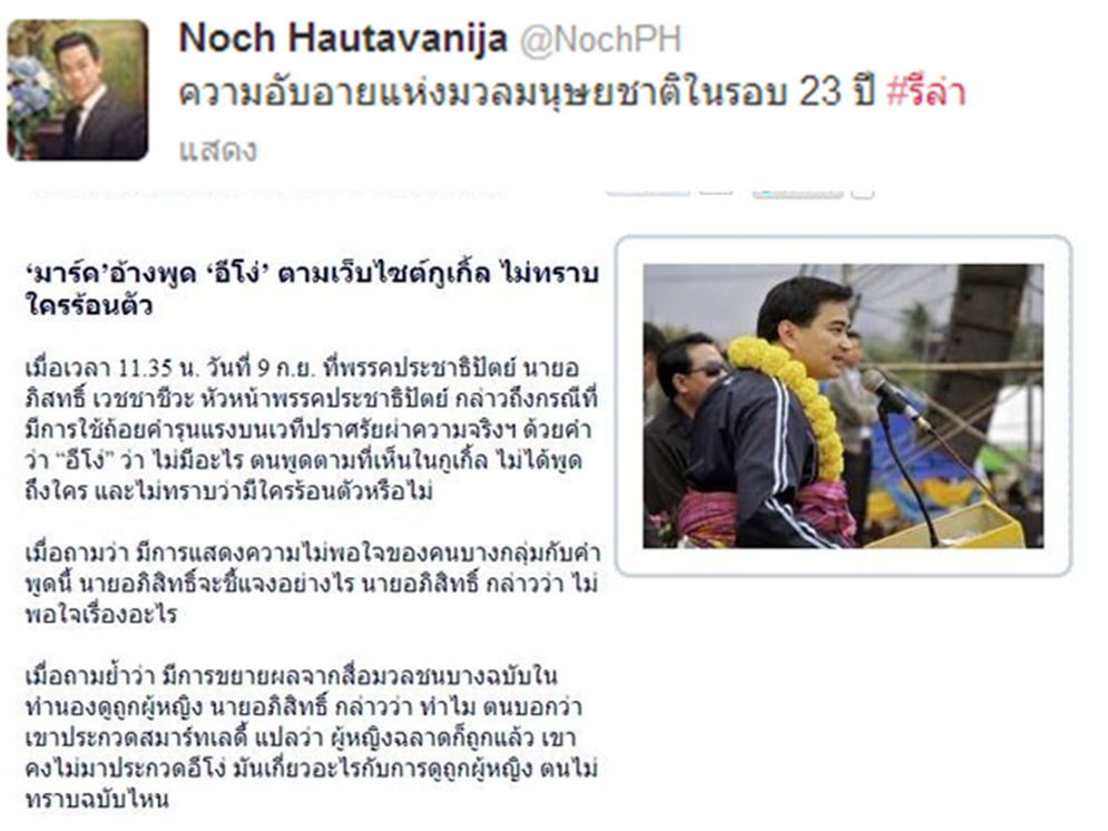 มันก็น่าเจ็บใจอยู่ที่ท่านนายกฯ ยิ่งลักษณ์ ดันไปชนะเขาได้ในช่วงที่เขาเรืองอำนาจ เรียกว่าผลของการเลือกตั้งในตอนนั้น
