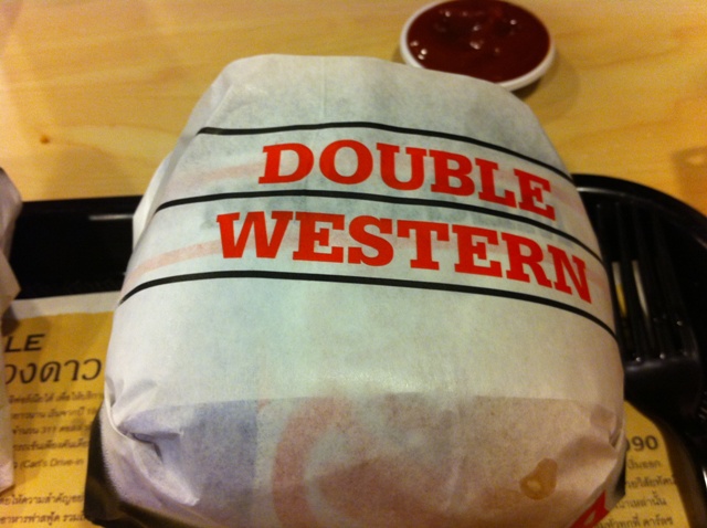 - สาขาที่ผมมาทานกับภรรยาสุดที่เลิฟ นั้นก็คือสาขา 24 อเวนิว ซอยสุขุมวิท 24 ติดกับโรงแรมเดวิด ของเฮียชูวิทย์ นั่นแหล่ะครับ เนื่องจากที่ผมได้ศึกษาจากกระทู้เก่าๆมาบ้างแล้วก็เลยทำให้การสั่งอาหารเป็นไปอย่างราบรื่นครับ ซึ่งชุดที่ผมสั่งนั้นเป็น Double western with Beacon combo set โดยเลือก criss cut (มันทอด) เป็นเครื่องเคียงครับ ส่วนของภรรยานั้นเป็น Super star with cheese และเลือก Onion ring เป็นเครื่องเคียงครับ แล้วก็สั่ง Chilly cheese french fried ขนาดกลาง เพิ่มอีก 1 เมนูครับ (ที่จริงผมสั่งขนาดเล็กแต่ภรรยาผมเธอชอบลองของครับ) มาดูกันเลยครับกับของที่ได้มา