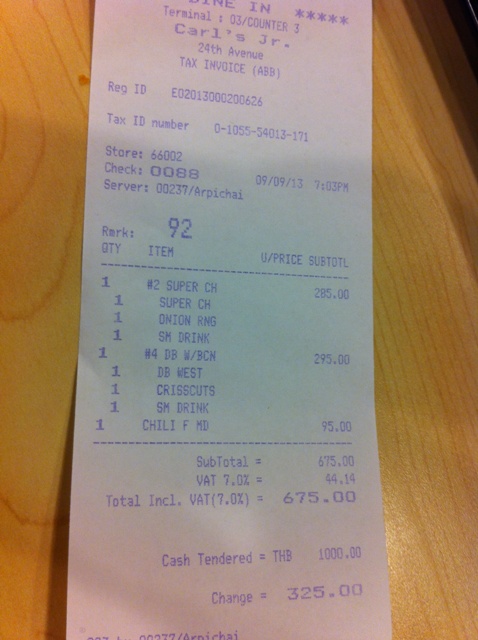 - ค่าเสียหายครับ สองคนหมดไปหกร้อยกว่าบาท ก็นับว่าทานบ่อยๆคงไม่ไหวครับ โครงการหุ่นดีคงเป็นชาติหน้าแน่ๆ นานๆพอไหวครับ แต่คงต้องนานมากๆๆๆๆๆๆ