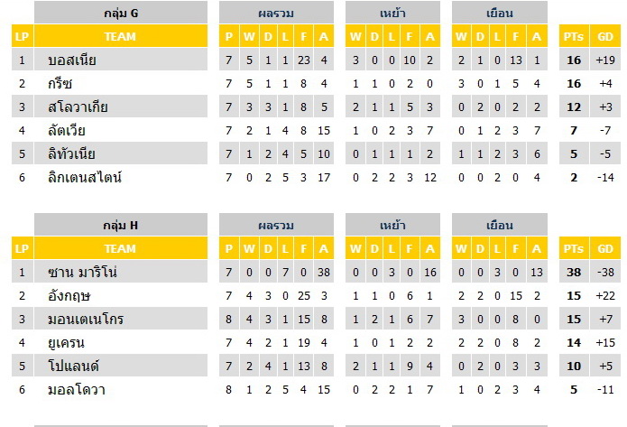 ที่สำคัญ กลุ่ม H ซานมาริโน นำขาด เป็นอันดับ 1 ของกลุ่มแน่นอน คงไมีมีทีมไหนไล่ทัน